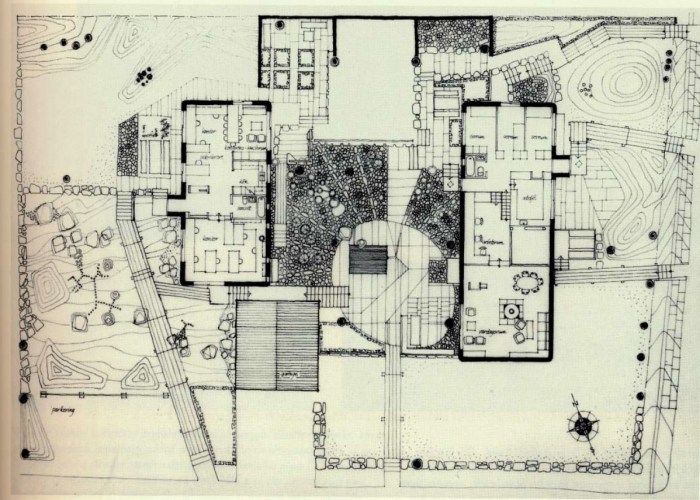 Preciosa casa de Erskine, miembro nórdico de una familia a la que también podrían pertenecer los Eames, los Smithson o incluso el primer Charles Moore, expertos en sacar de encargos modestos grandes cosas. Esta casa se me antoja, y es algo que me ocurre con el resto de su obra, una casa alegre.