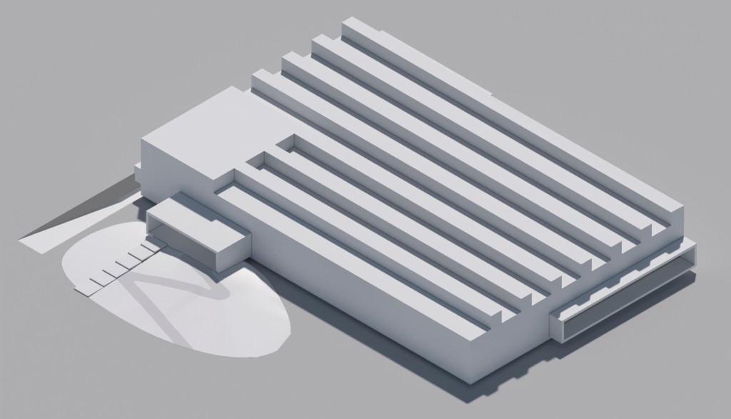 Se plantea un sistema de lucernarios longitudinales perpendiculares a la estructura que permiten la entrada de rayos de luz fileteada.
