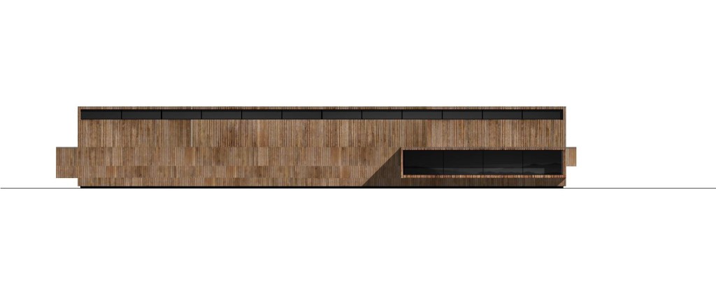 La piscina se concibe como una estructura de hormigón prefabricado sobre la que se coloca un cerramiento de hoja única de panel sándwich de madera con 20 cm de aislamiento en el interior, consiguiendo continuidad de aislamiento y de acabado exterior, que irá matizándose y cualificándose con el tiempo.